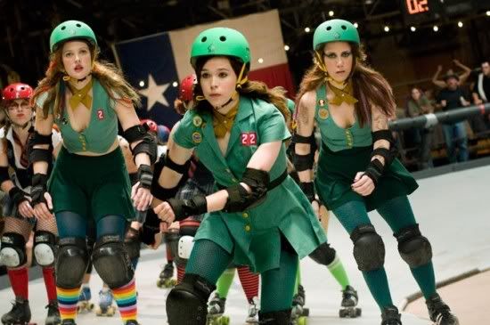"Whip it!" stars the diminutive Ellen Page as Bliss Cavender, a small town girl who loves indie music and is a bit of social misfit, she finds solace competing in a roller derby league in Austin Texas.