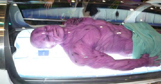 Thu, July 22, 2010 ScreenJunkies has a shot of the Abin Sur corpse on display at Comic Con in San Diego. For those of you unaware of who this creepy looking purple dude is he's the alien that gives Ryan Reynolds character Hal Jordan the Lantern Ring granting him is awesome giant fist forming powers!